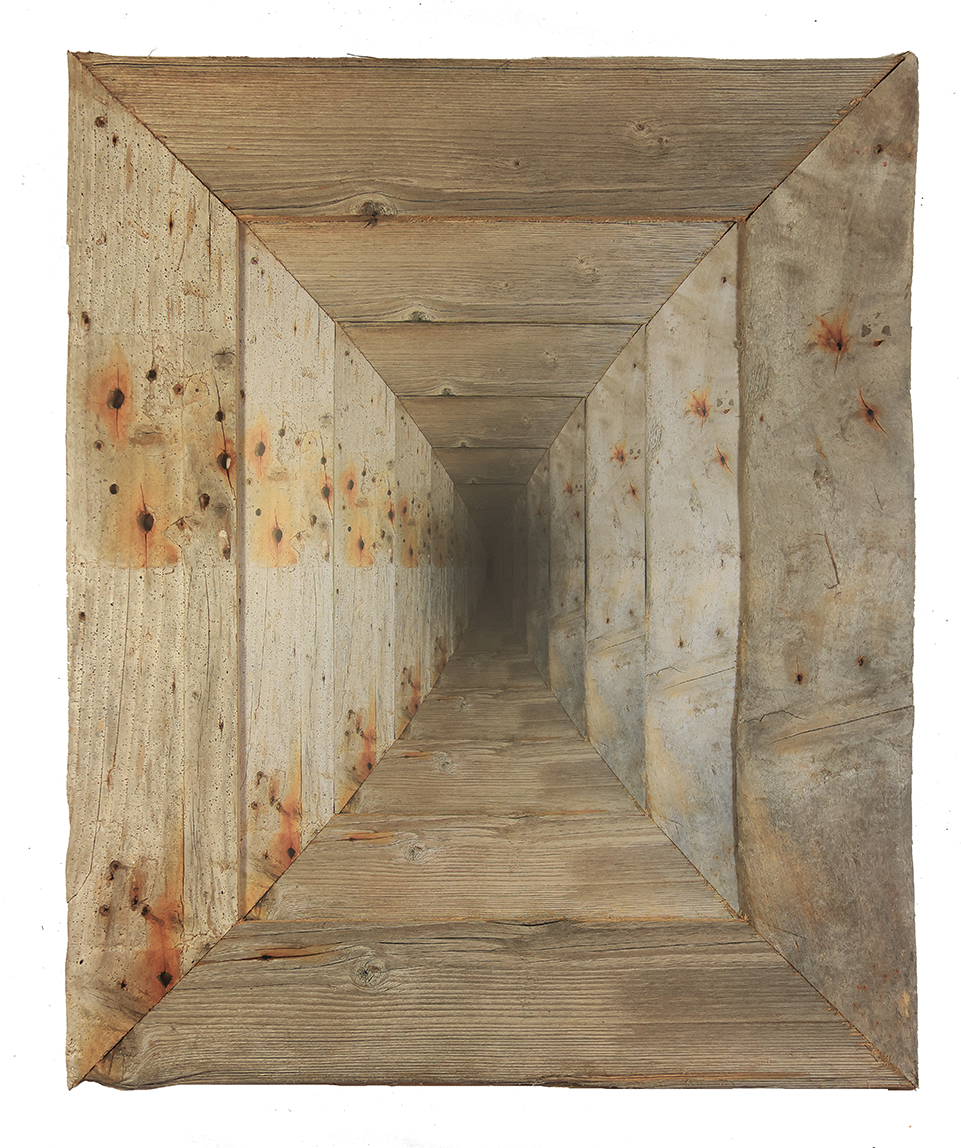 Con gli anni il lavoro si è evoluto sia dal punto di vista delle forme che delle geometrie e del colore. Ho cominciato ad usare anche vecchi legni di barche. All’inizio i legni erano i 4 lati  della cornice fotografati su uno sfondo nero poi ho cominciato a  modificare la realizzazione dell’immagine ripetendo la cornice all’infinito in continui ‘requadrage’ concentrici. Questa ricerca di fedeltà nel rendere artisticamente un profondo sentire ha svelato anche a me stesso la natura concettuale del mio fare arte aprendo nuovi scenari immaginativi».