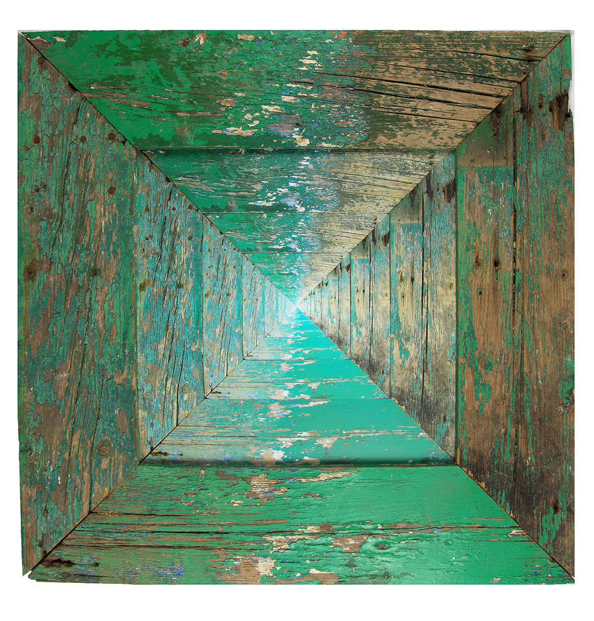 64×64 anno 2024 L’opera è stata realizzata con i paglioli di un vecchio scafo in legno in stato di abbandono presso le antiche saline di Portoferraio.